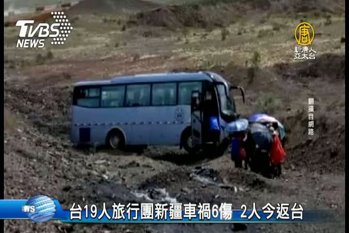 【新唐人亞太台 2017 年 06 月 23 日訊】歡迎回來。台灣旅行團前天(21日)在中國新疆發生車禍,造成六人受傷,交通部觀光局昨天表示,初步了解,這19名團員搭乘的遊覽車,是在新疆恰庫爾圖附近,因衝出邊坡而發生事故,六名傷者當中,有兩個人今天會搭機返台治療,一人已出院無大礙,另外三人還在當地醫院觀察及治療中。
