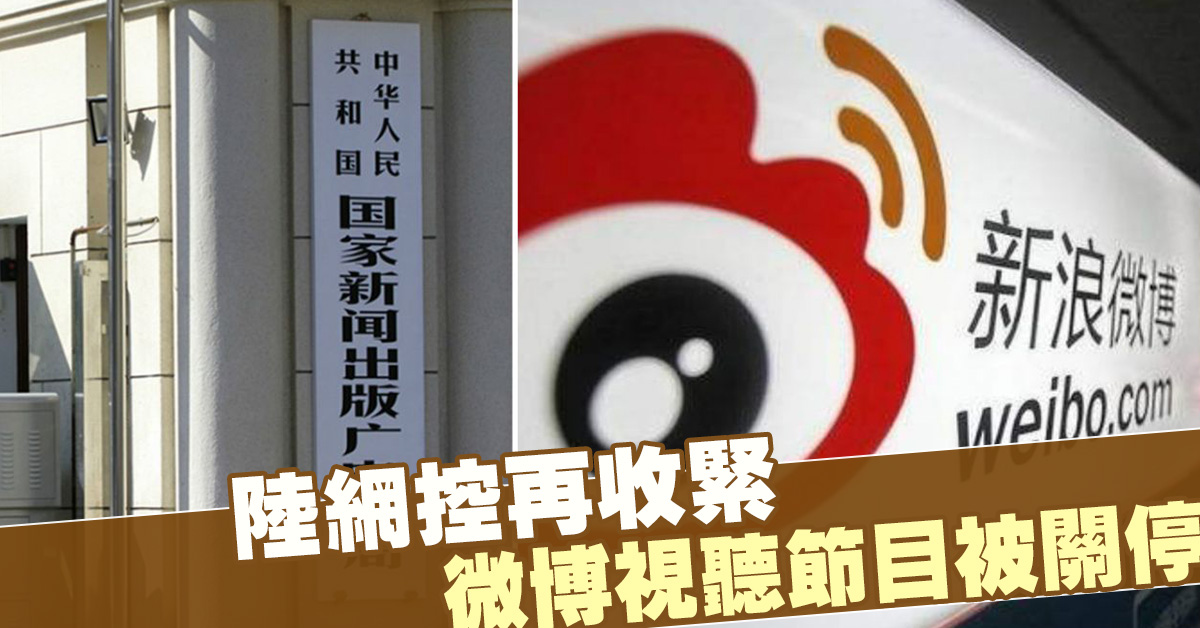 6月22號,中共廣電總局發佈公告稱,針對「新浪微博」、「ACFUN」、「鳳凰網」等網站,不具備播放網絡視聽節目許可證,且大量播放不符合中共規定的時政類視聽節目,已責成屬地管理部門,關停微博等網站的視聽節目服務。