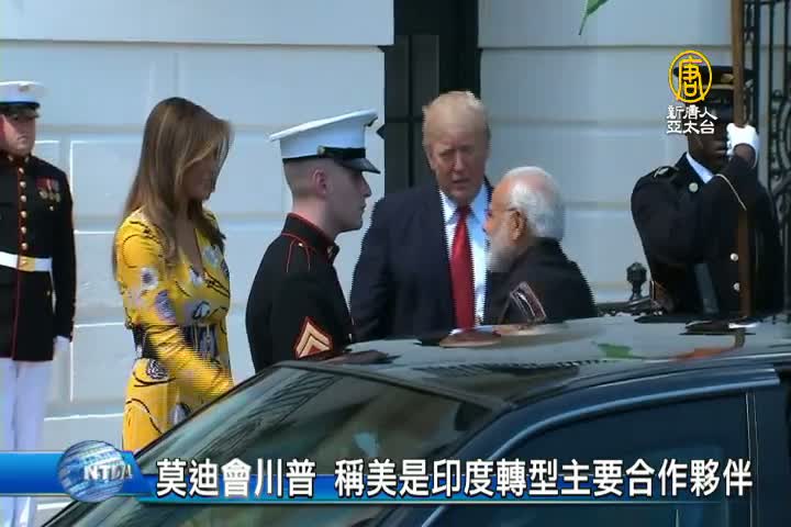 【新唐人亞太台 2017 年 06 月 27 日訊】新聞首先來看到,周一美國總統川普,與印度總理莫迪在白宮進行首度會面,以強化兩國的戰略伙伴關係。川普會後強調,兩國關係從未如此強大。莫迪則說,美國是印度轉型過程中的主要合作夥伴。外界相信,兩人討論到打擊恐怖主義及國防合作,以及如何應對中國軍事崛起。莫迪背後代表的是全球成長最快的大型經濟體之一,也是美國企業積極搶進的市場,而莫迪在拜會川普前夕,周日就先會晤美國企業高層,包括蘋果執行長庫克、亞馬遜、Google、微軟執行長都出席。
