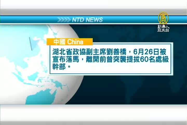 湖北省政協副主席劉善橋,6月26日被宣布落馬,離開前曾突襲提拔60名處級幹部。