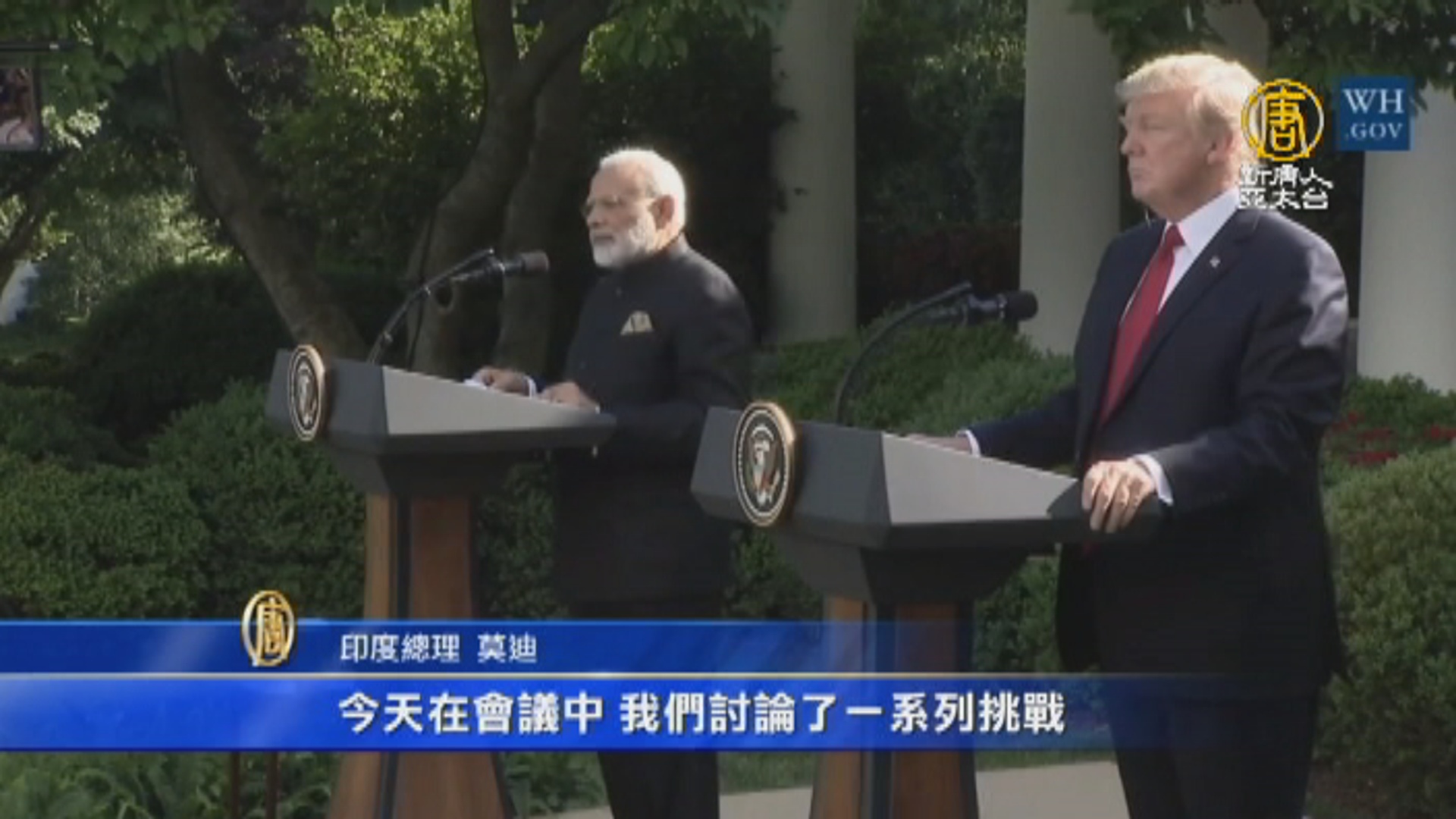 【新唐人亞太台 2017 年 06 月 27 日訊】新聞首先來看到,週一,印度總理莫迪到訪白宮﹐與美國總統川普及其團隊舉行了首次會晤。會後﹐兩位領導人在白宮玫瑰園發表的聲明中表示﹐希望進一步提升雙方在經濟與安全方面的合作夥伴關係。