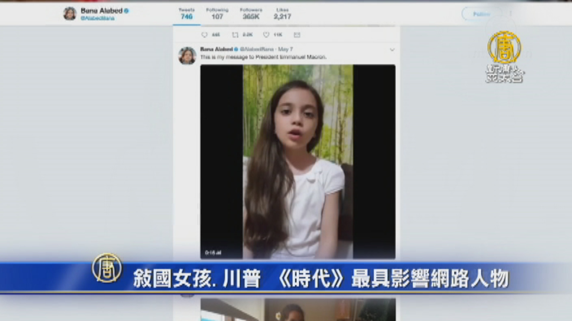 【新唐人亞太台 2017 年 06 月 27 日訊】美國《時代》雜誌周一選出,25位在網路上最具影響力的人物,包括美國總統川普、英國女作家J.K.羅琳,連一名只有八歲的敘利亞小女孩芭娜,都上榜了,這位小女孩,因為經常在推特上發表自己在敘利亞內戰中的生活照片或視頻,引發全球關注。