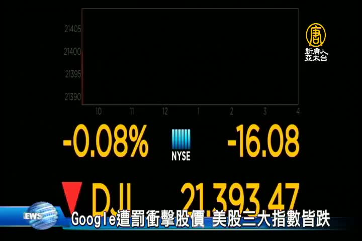 Google遭罰衝擊股價 美股三大指數皆跌