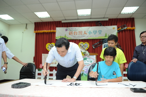 馬英九信守承諾 偏鄉陪家扶兒揮毫