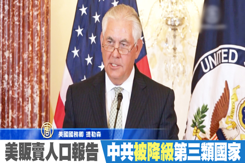 美國國務卿 提勒森:「中國今年被降級為第三類國家,部份原因是官方沒有採取嚴肅措施,結束在販賣人口上的共謀,包括存在於在中國境內的朝鮮奴工。」