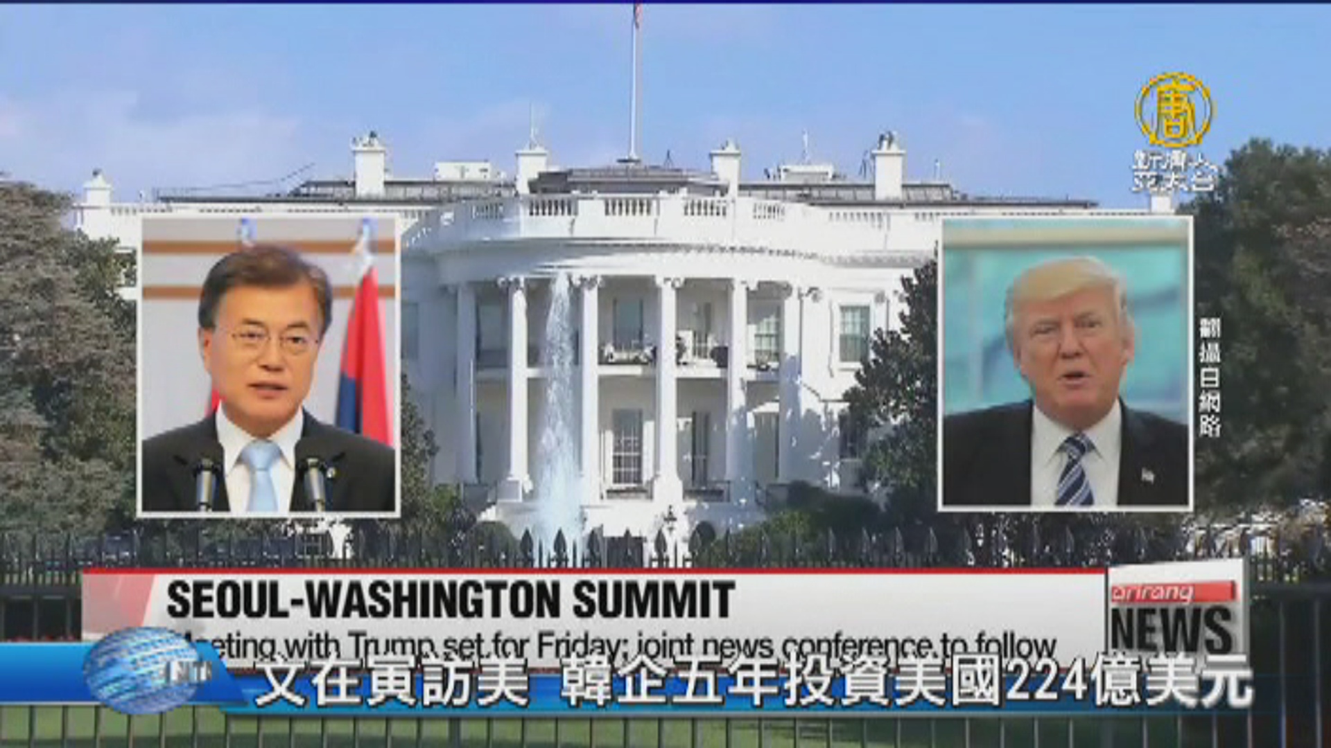 【新唐人亞太台 2017 年 06 月 29 日訊】歡迎回來。南韓總統文在寅台北時間周四抵達美國,展開為期四天的訪美行程,並將在明天與川普會晤。除了北韓核問題,這次峰會另一個焦點是美韓貿易。據韓聯社報導,隨文在寅訪美的52家企業,在未來5年,將向美國投資224億美元。