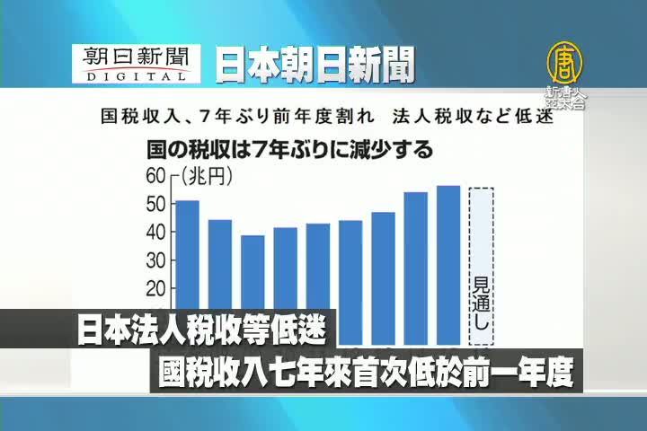 【新唐人亞太台 2017 年 06 月 30 日訊】來看到日本朝日新聞報導:日本法人稅收等低迷,國稅收入七年來首次低於前一年度。