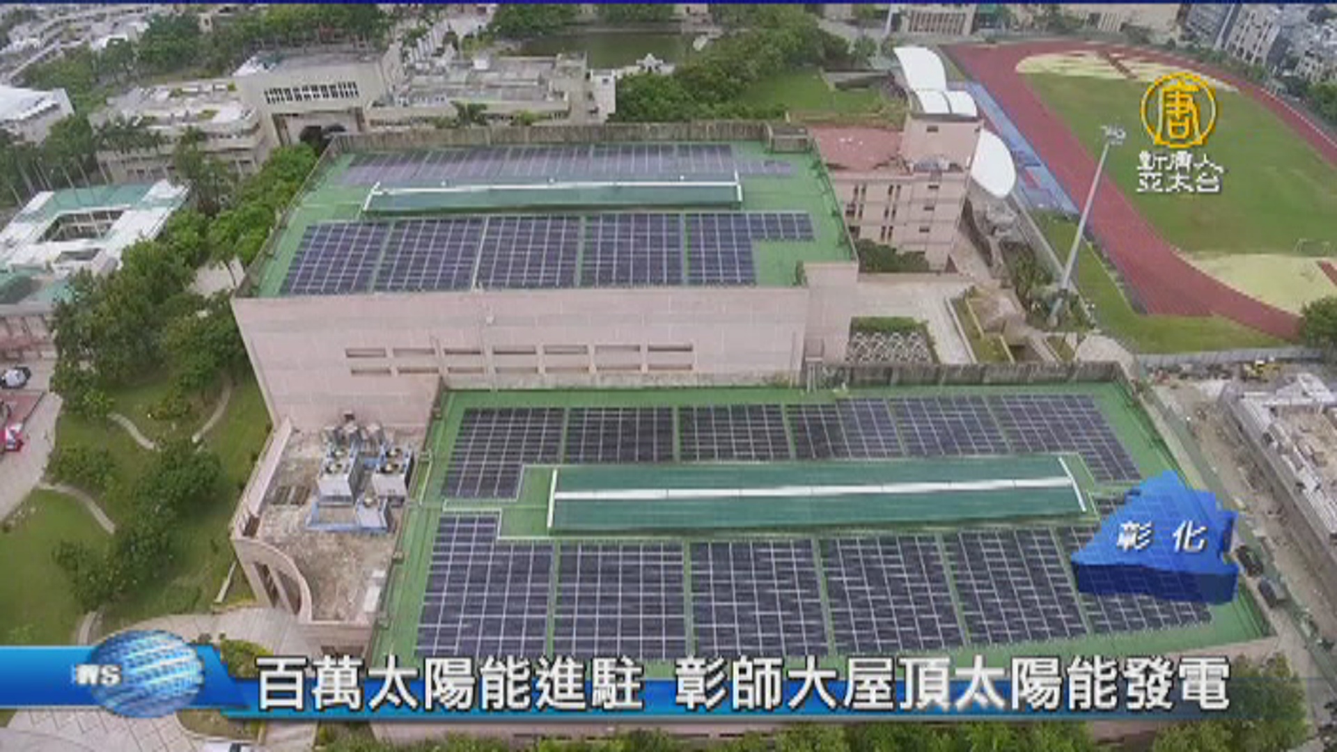 【新唐人亞太台 2017 年 06 月 30 日訊】國立彰化師範大學近日與光電業者合作,在進德校區約20年屋齡、共100坪的體育館屋頂,設置太陽能發電系統,業者說預計1年可創造300萬元的賣電收入,太陽能板還能阻隔太陽直射,降低空調用電,節能省電創造雙贏。