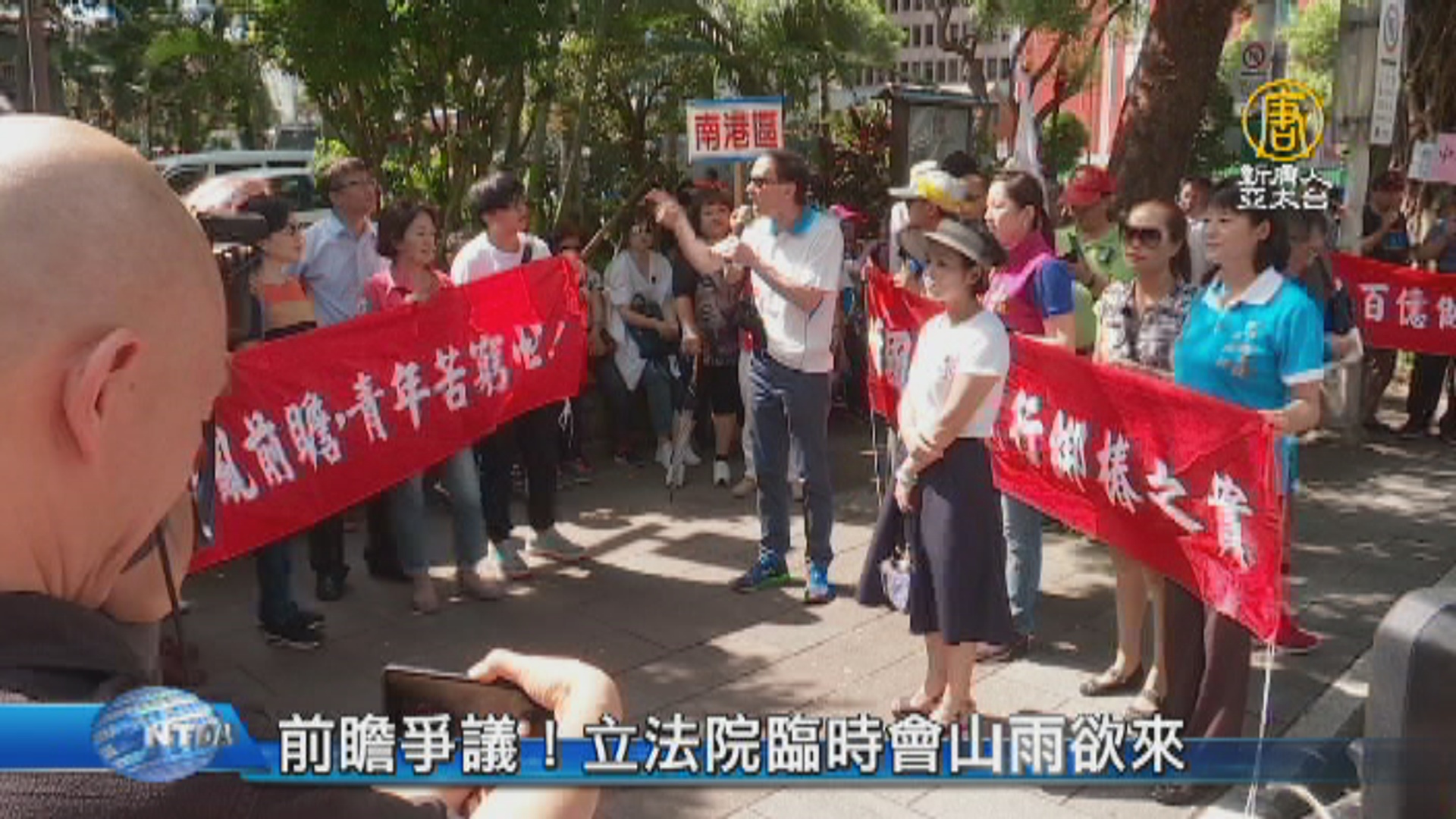 【新唐人亞太台 2017 年 07 月 03 日訊】鏡頭轉回台灣。立法院臨時會將處理前瞻條例,民進黨計畫讓法案闖關,引起在野黨反對。上午朝野黨團進行協商,不過依舊是各說各話。而場外藍營民代也動員抗爭。