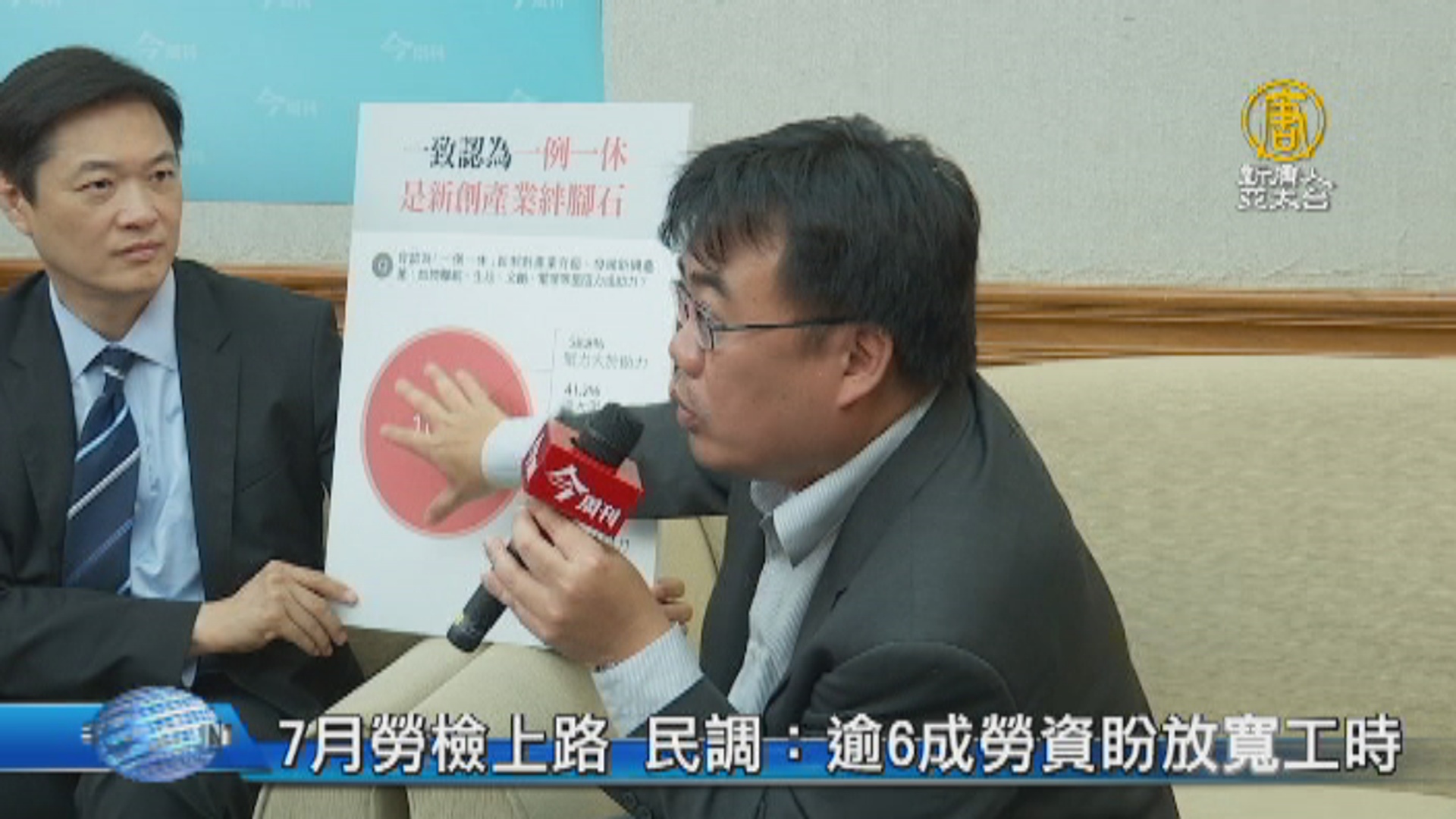 【新唐人亞太台 2017 年 07 月 05 日訊】一例一休7月正式進入勞檢期,不過各界的反對聲浪卻不間斷,今周刊與人力銀行的一份民調指出,47%的人資主管 建議政府,應該放寬 每月加班時數上限,有78%的上班族則認為,新勞基法,會讓勞資雙方更加對立,也有45%的上班族說,收入,變少了。
