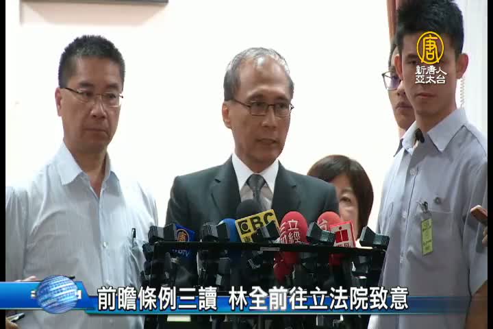 【新唐人亞太台 2017 年 07 月 05 日訊】最新消息,帶您看到,前瞻條例三讀通過之後,行政院長林全在剛剛,前往立法院,向立委致意,來看到晚間立法院最新畫面。