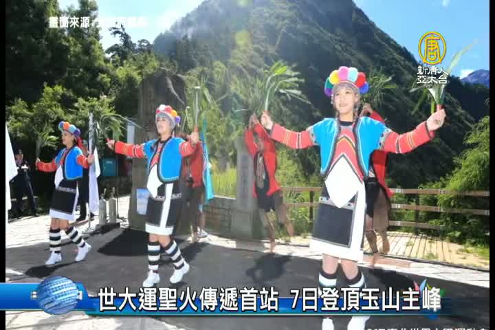 【新唐人亞太台 2017 年 07 月 06 日訊】台北世大運聖火傳遞的國內首站,今天早上正式展開,行前還特別舉行聖火登玉山的祈福儀式,在鄒族舞蹈團以及布農族原聲合唱團的天籟歌聲中,10名火炬手,從海拔2610公尺的玉山登山口出發,一路前行,今晚會入住在海拔3402公尺的排雲山莊,明天凌晨再攻頂玉山。
