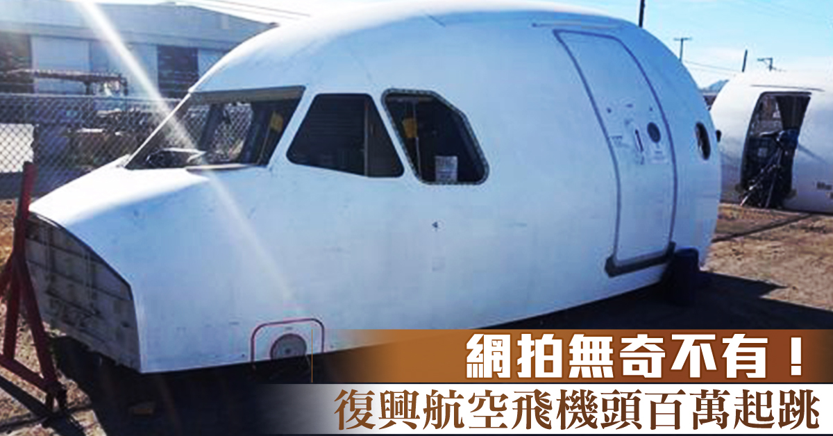 拍賣網商品無奇不有,甚至有人連飛機駕駛艙都拿來拍賣,日前有網友在外國拍賣網站上找到一架飛機的機頭,細看驚見竟然是隸屬去年剛解散的「復興航空」,且拍賣價格還破百萬台幣!