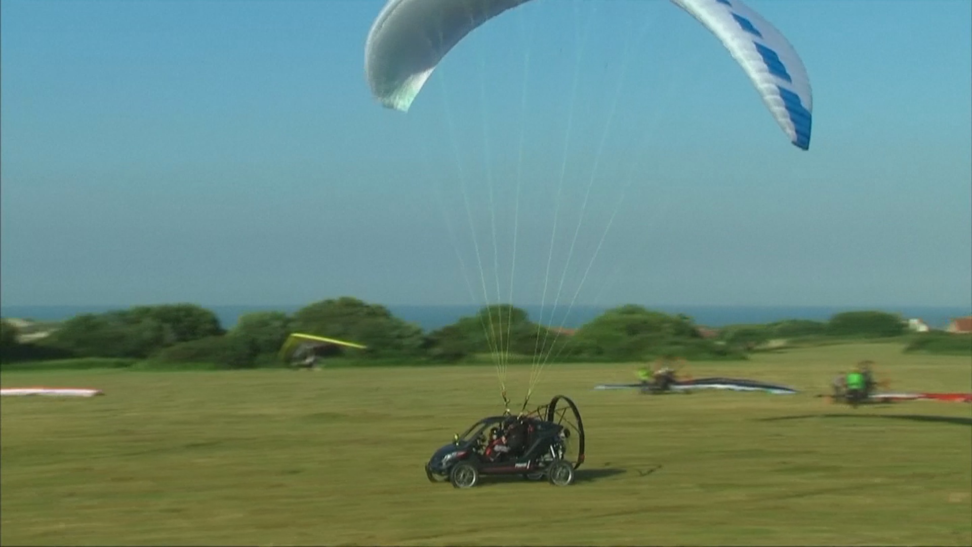 拉開飛行傘,進行最後的確認與安全檢查,飛行員布魯諾·維佐利(Bruno Vezzoli)進入駕駛座,車後的扇葉快速轉動,吹起飛行傘,駕駛員拉著手中的操縱繩,車子漸漸離地升空了。
