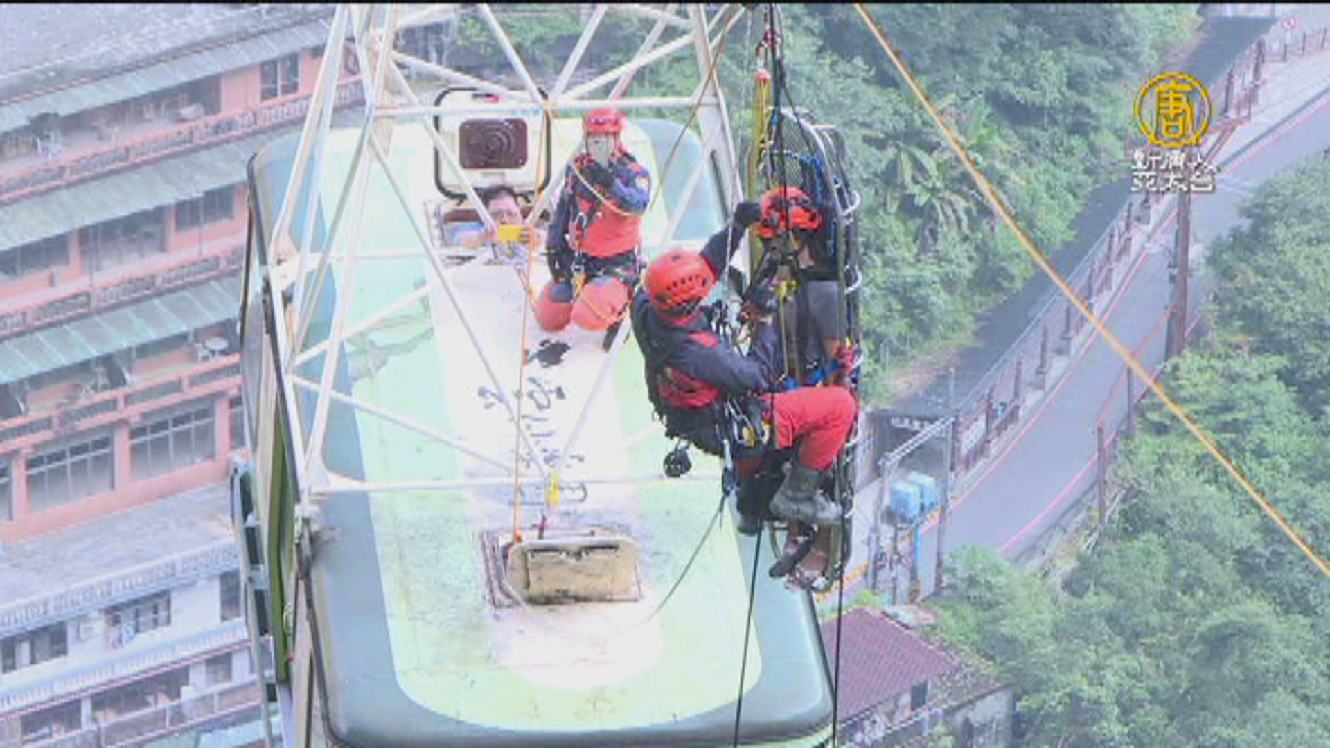 【新唐人亞太台 2017 年 07 月 12 日訊】歡迎回來。暑假到了,各個景點遊客增多,新北市烏來的雲仙樂園高空纜車,萬一發生纜車卡住、人員受困,救援難度大大增加。因此新北市消防局選在這裡,進行模擬救援演練,特搜人員全副武裝,沿著纜繩爬上滯空的纜車車廂,場面浩大!
