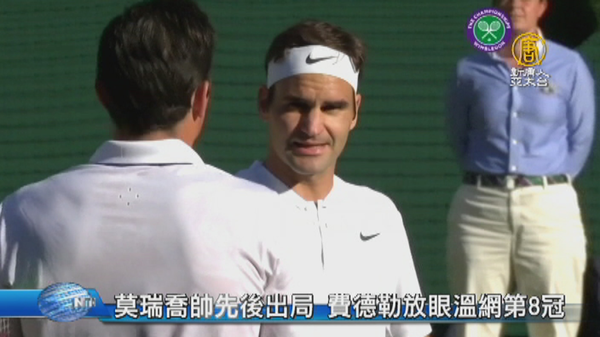 【新唐人亞太台 2017 年 07 月 13 日訊】歡迎回來。溫網男單賽事,英國本土的衛冕冠軍 莫瑞 和2號種子 喬科維奇,先後意外爆冷出局,讓縱橫草地瑞士天王費德勒,第12度闖進4強賽,距離破紀錄的溫網第8冠到手,還有兩戰。
