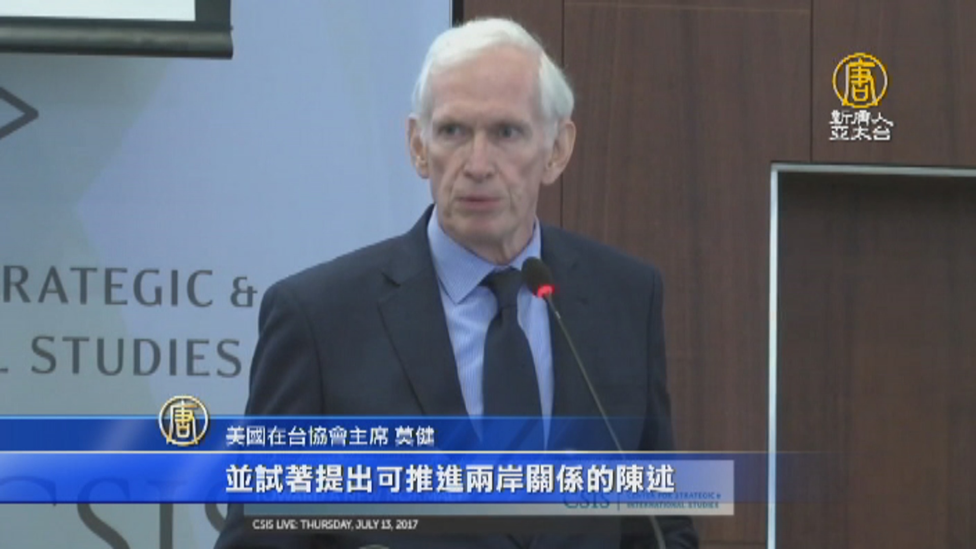 【新唐人亞太台 2017 年 07 月 14 日訊】再來看到,AIT前後任主席交鋒兩岸關係,美國在台協會主席莫健,今天在華府的戰略暨國際研究中心,發表兩岸關係研討會的午餐演說。由於美方官員常常提到兩岸互動,雙方得展現克制、彈性及創意的說法,前美國在台協會主席卜睿哲今天在會上,也直接把問題丟給,AIT現任主席莫健。