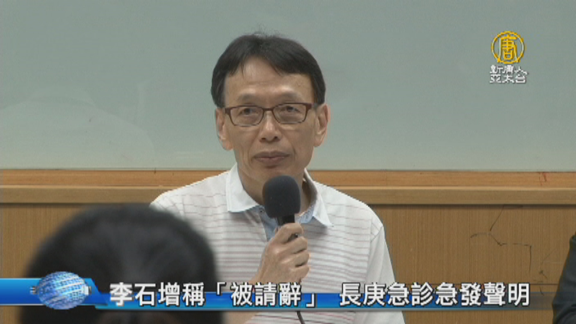 【新唐人亞太台 2017 年 07 月 14 日訊】長庚醫院急診醫師離職風波,前決策會主委李石增上午召開記者會,表示自己是「被請辭」,事實上是長庚董事長王瑞慧,為求自保,全部過錯讓他扛下,讓他成為代罪羔羊。