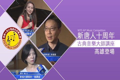 【新唐人亞太台 2017 年 07 月 15 日訊】新唐人電視台今年邁入10週年,特別企劃古典音樂的大師系列講座,共有6場,第一場今天(15日)在高雄鳳新高中松炎樓演奏廳舉行,邀請知名鋼琴家楊千瑩和知名小提琴家余道昌演講,吸引喜愛古典音樂的朋友,到場聆聽。