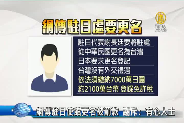 網傳駐日使館更名被罰款 謝斥: 有心人士