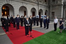 2020-08-09 22:13:02前總統李登輝辭世,日本前首相森喜朗今(9日)率日本國會跨黨派議員來台弔唁!弔唁團在下午2時33分降落於松山機場, 4點前往總統府晉見總統蔡英文,之後才到台北賓館追思,在台灣短暫停留約3個半小時,隨即返回日本,全程團進團出遵守防疫措施。