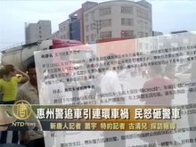 2011-09-07 16:36:04連撞4輛車和多名路人之後衝進一棟建築物 ,惠州警追車引連環車禍 民怒砸警車