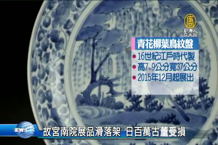 【新唐人亞太台 2017 年 07 月 19 日訊】已經有350年歷史的日本珍貴瓷器,居然在故宮南院的展架上滑落,造成受損!受損的是前年(2015年)底就向「大阪東洋陶瓷美術館」借展的「青花柳葉鳥紋盤」,院方調閱監視器畫面,發現展櫃之前並沒有被人刻意搖晃拍打,由於這件文物是日常用品,之前就有修復紀錄,目前還要釐清是本來修復的部分脫落還是無感地震惹禍。