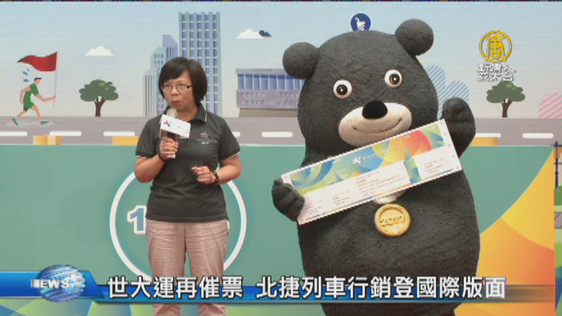 【新唐人亞太台 2017 年 07 月 20 日訊】世大運進入倒數階段,88萬張的門票,目標賣出五成,不過目前僅賣出僅12萬張,主辦單位積極催票,以世大運熊讚為主角,用動畫方式介紹比賽規則,讓網友分享轉貼,而先前推出的北捷世大運彩繪列車,地板換上「泳池」3D圖像,超逼真,還吸引韓國媒體報導。