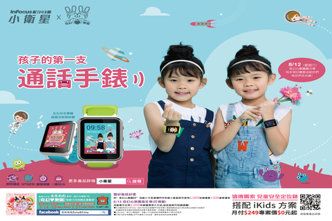 InFocus小衛星兒童智慧手錶自2016年上市以來,即以明確的定位及貼心的功能獲得市場一致好評,從中也顯示出現代父母對孩童健康與外出安全的關心,尤其現在正值孩童暑假期間,孩童外出遊玩、課外學習、參加夏令營等在外時間也隨之增加,安全與健康問題更讓家長們特別憂心。InFocus小衛星兒童智慧手錶即可讓家長們時時掌握孩童的動態,家長只要透過手機APP,即可及時查看孩童的位置,也能設置定位點到達與離開通知,掌握孩童行動資訊。另外備有雙向語音通話及讀取簡訊功能,能隨時與孩童聯繫;一鍵SOS功能讓孩童遇到危險時第一時間讓家長知道,同時也可設定喝水、休息等關懷提醒,讓孩童學習自我管理,養成生活好習慣,給予孩童暑期全天候的守護。