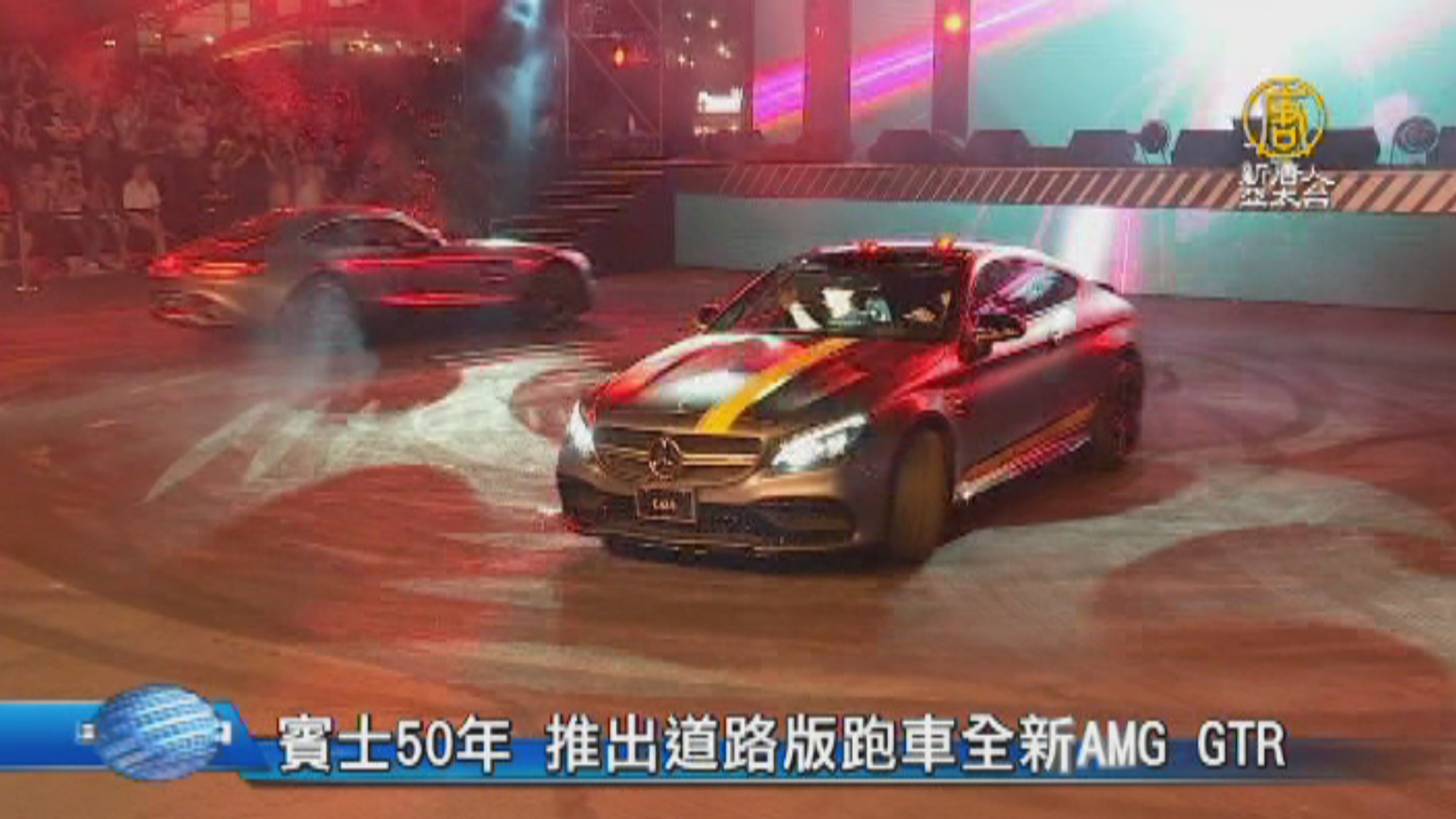 【新唐人亞太台 2017 年 07 月 26 日訊】台灣賓士昨天晚間(25日) 發表全新性能的 道路版跑車AMG GTR,此款車型以V8汽缸,從0至加速到時速100公里,只要3.6秒,極速可達318公里,是品牌家族當中以最高比例移植 賽道精髓的道路版跑車,打破市售量產前置後驅最快單圈成績。儘管要價高達1038萬元起跳,不過上市前即已吸引不少車主下單,在今年車市前景未明的氛圍下,表現亮眼。