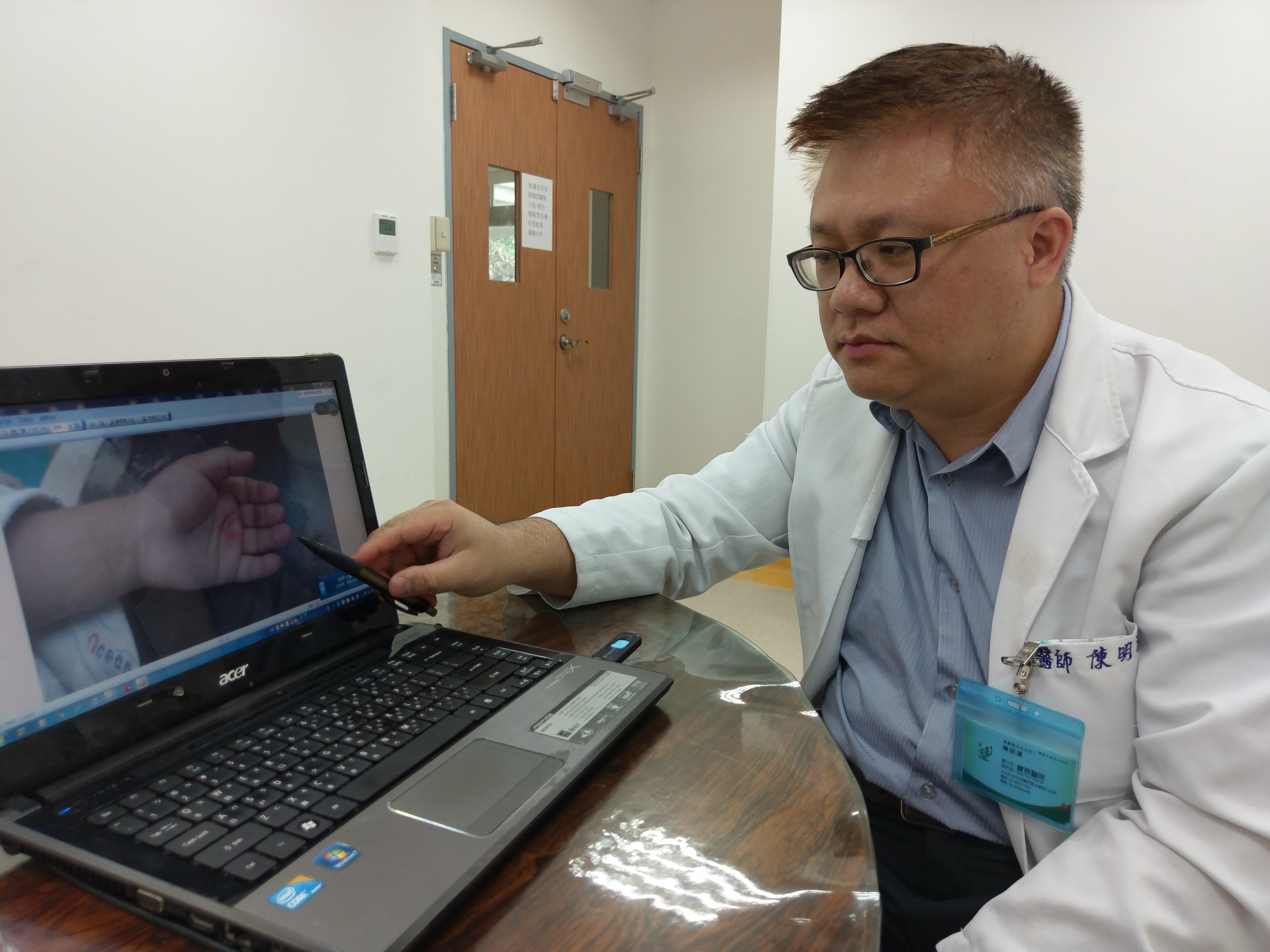 台中豐原醫院傷口照護科主任陳明澤表示:雖然外觀上沒有明顯傷口、或是凸起來的東西,但是摸起來有確實有硬硬的東西,從X光中於第三指處,也有一個類似玻璃的東西。