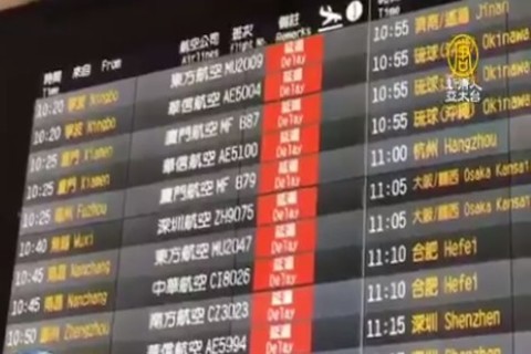 尼莎颱風襲台 桃園國際機場受影響航班情況(新唐人截圖)