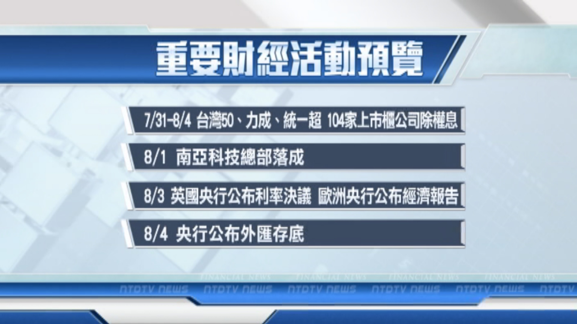 財經活動預告|七月三十日