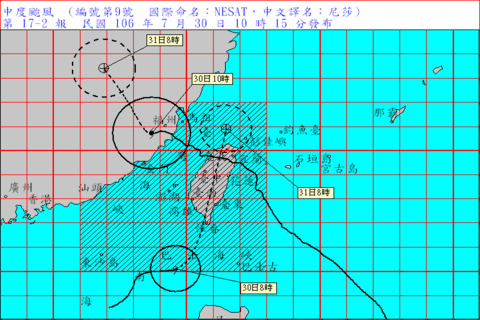 【新唐人亞太台 2017 年 07 月 30 日訊】第9號尼莎颱風昨晚快閃離開台灣,今天上午6點暴風圈由馬祖進入福建。第10號颱風海棠緊追在後,氣象局預估,海棠颱風最快在下午6點從北台南登陸。