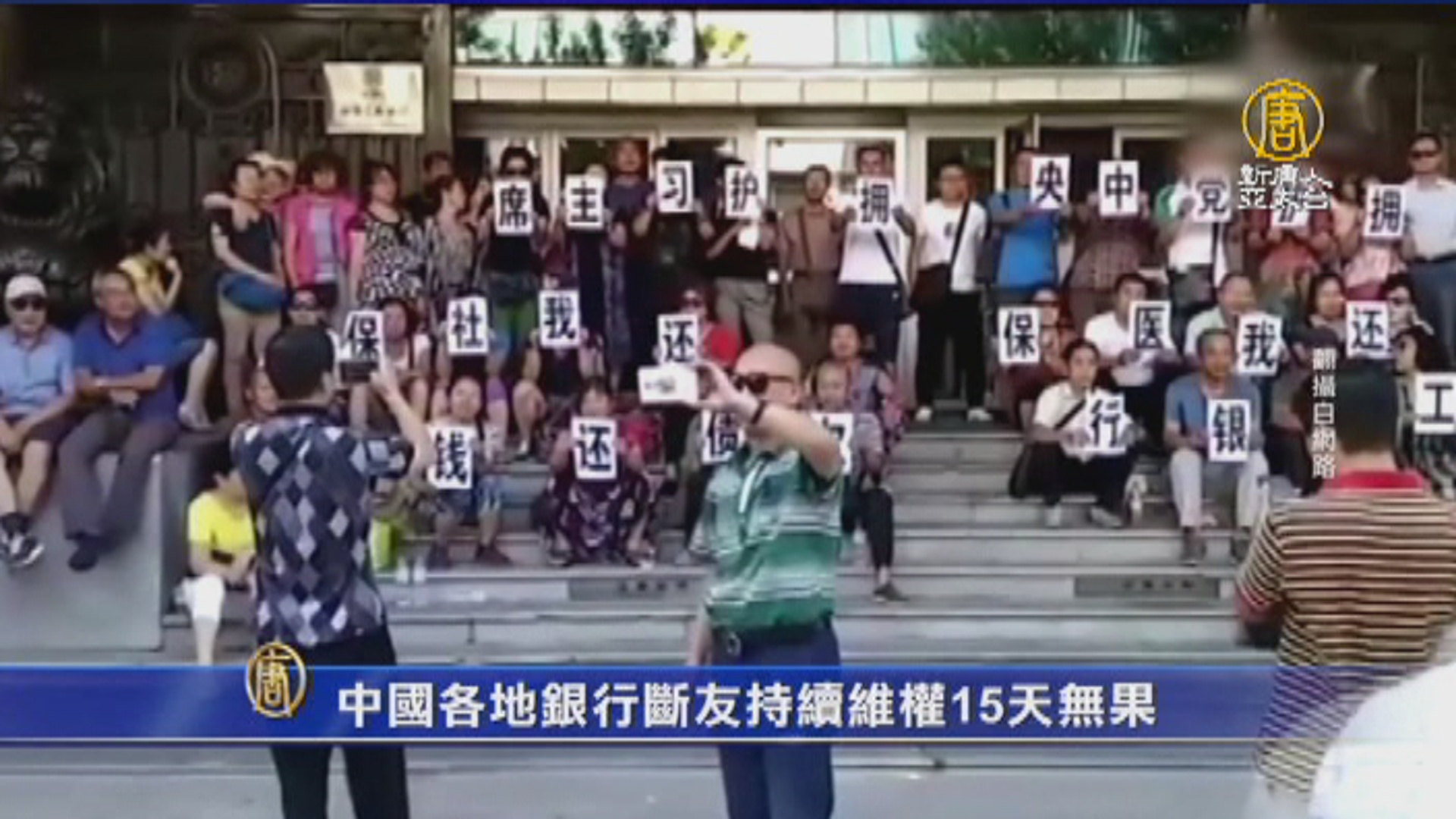 【新唐人亞太台 2017 年 07 月 30 日訊】中國四大國有銀行,被買斷工齡的下崗職工,又稱斷友,他們因為到北京上訪受阻後,從7月開始到全國各地總行,分行維權,但近百人在黑龍江持續維權了15天之後,卻被銀行以打掃為由,阻攔干擾。