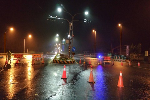 恆春鎮屏159線龍鑾一號橋(恆春鎮龍水里龍泉路)目前無法通行,改道走槺林南路或南光路,台26線龍鑾橋由三工處楓港工務段封閉,目前臺26線南北無法通行,改道走恆南路。東港鎮中正路一段長春路口至新學路口(中油加油站前)積水無法通行,東港鎮公所於19時10分設置路障雙向封閉,請用路人提早改道行駛。