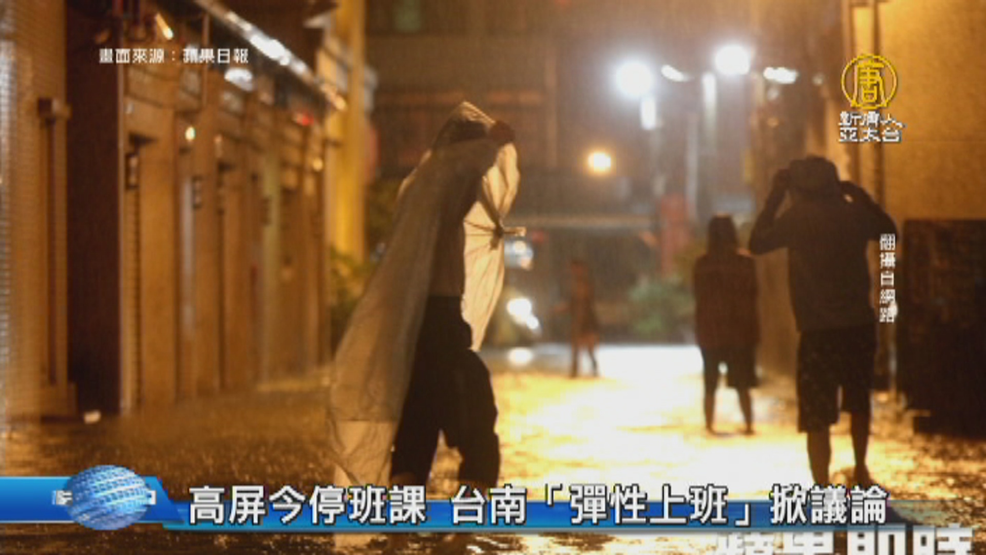【新唐人亞太台 2017 年 07 月 31 日訊】海棠雨量驚人,高雄市凌晨大雨不斷,多處低漥地區積水不退,交通要道已成汪洋一片。仁武區低窪地帶水淹過膝,居民不敢入眠,徹夜守候擔心災情擴大。豪雨,也造成屏東縣多處淹水、道路橋梁封閉,牡丹水庫原水濁度破表,淨水場今天凌晨 被迫關閉取水,屏南供水吃緊。今天,全台除了高雄市、屏東縣 和台中市和平區的梨山國中小與平等國小停班課之外,其他縣市都是正常上班上課。台南市擔心民眾上班時間風雨正強,宣布早上六到八點的上班時間可彈性處理,不過,卻引發市民反彈,因為多數的公司都是八點之後才上班, 如果遲到,要算誰的。