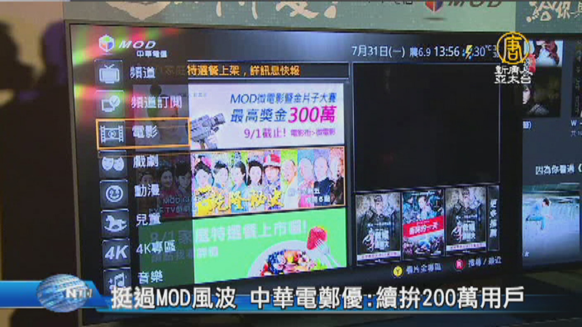 2018-07-09 20:26:52世足賽收視造成一陣旋風,中華電信旗下MOD平台,用戶數量也增加,今天董事長鄭優,出席活動,表示會持續強化 MOD 內容,目前計畫跟國內,還有國際媒體,合作製作戲劇、電影,可望下半年看見成果。
