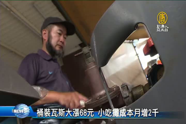【新唐人亞太台 2017 年 08 月 01 日訊】國內油價連二漲,加上液化石油氣的國際合約價格也大漲,8月份桶裝瓦斯,預估每公斤恐大漲3.4元,如果以20公斤的桶裝瓦斯來計算,有小吃攤每個月要30桶,成本就要多出2000多元。