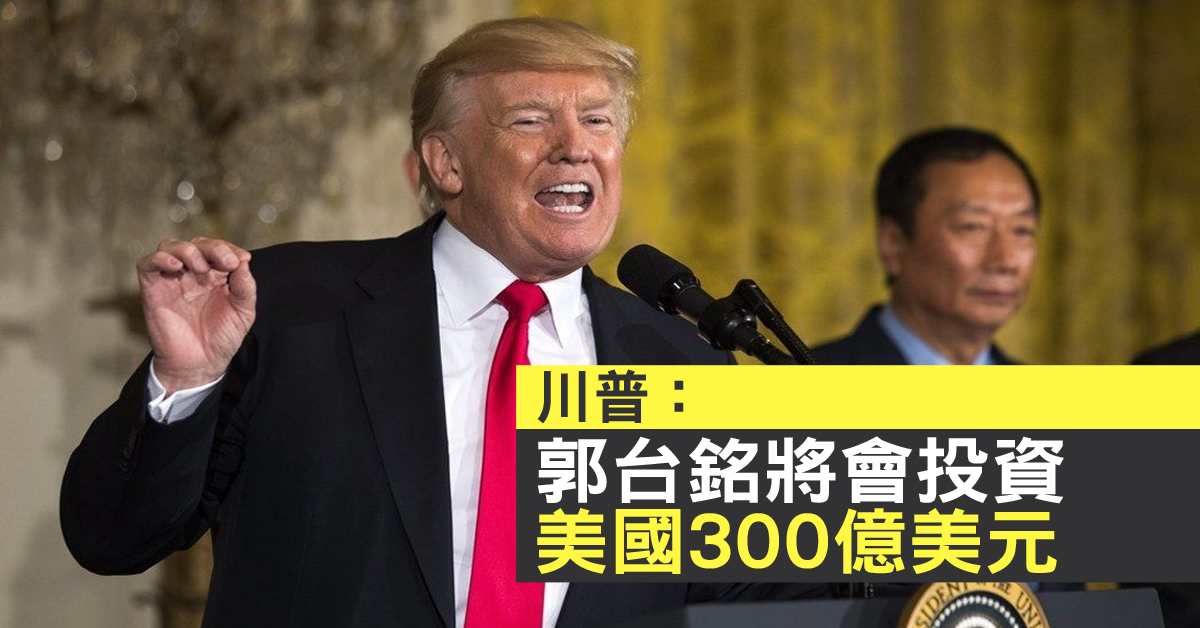 美國總統川普8月1日在白宮一場公開的小型企業活動時透露,郭台銘將在美國投資300億美元。