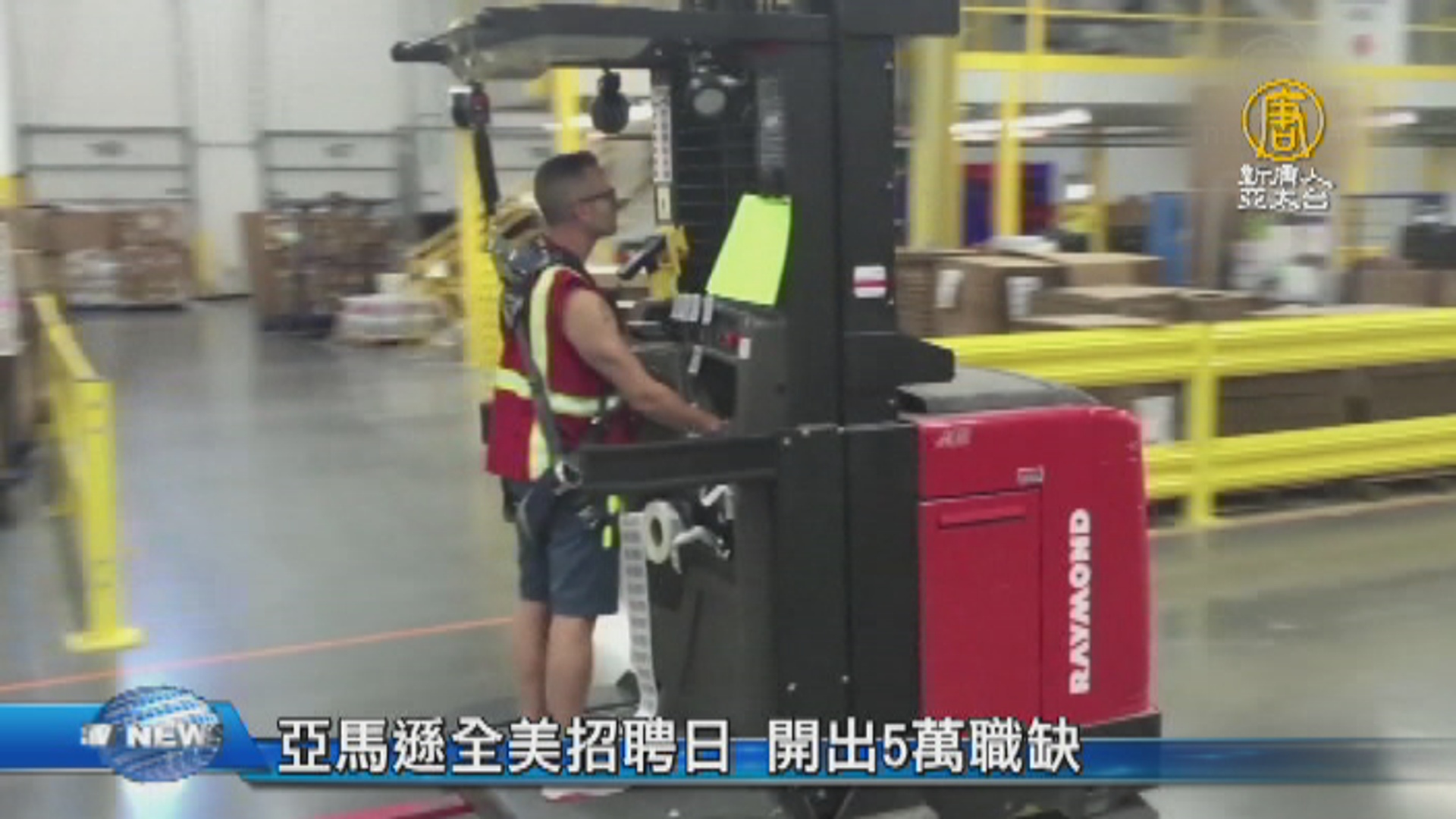 【新唐人亞太台 2017 年 08 月 03 日訊】網路購物龍頭亞馬遜,周三在全美10個出貨地點同步大規模招兵買馬,這波徵才計畫,開出5萬職缺。