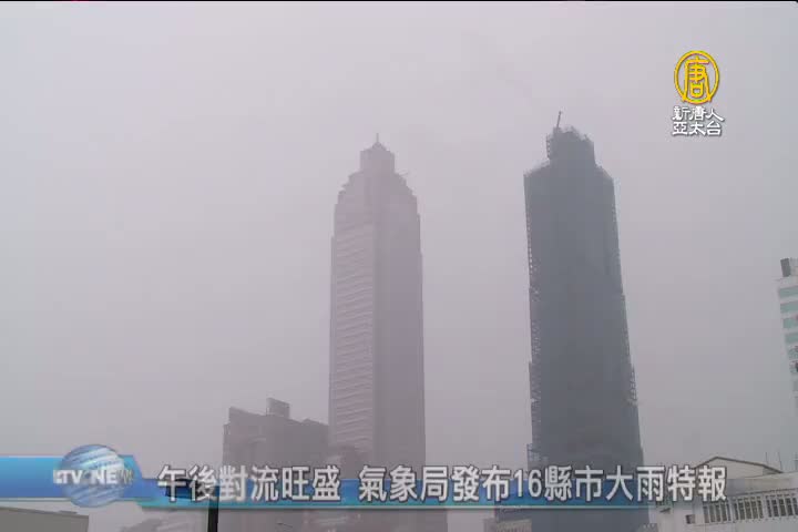 【新唐人亞太台 2017 年 08 月 03 日訊】觀眾朋友今天下班回家有淋到雨嗎?氣象局下午5點50分,發布大雨特報,提醒台北到嘉義、還有南投地區及南部山區等全台16個縣市,注意大雨。截至晚間7點,台中東勢區新伯公觀測站,每小時觀測到 51豪米雨量。