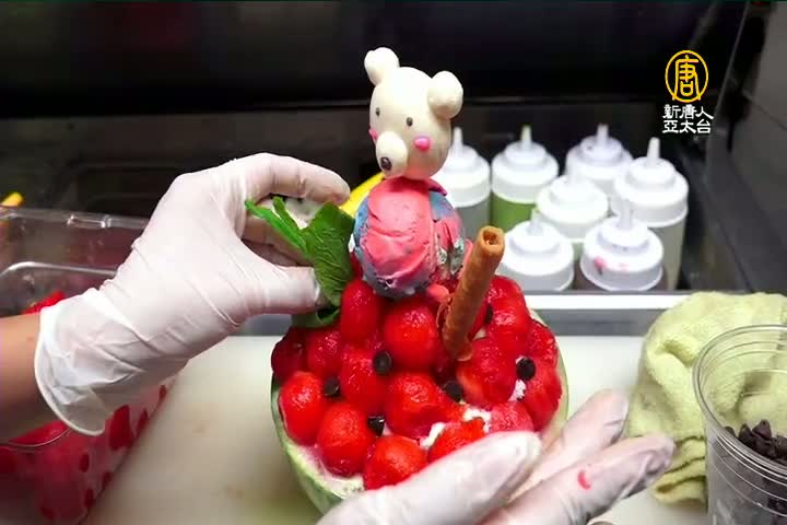 製作一個西瓜刨冰甜點需要用上整個西瓜,在炎炎夏日裡是最清涼的選擇。
