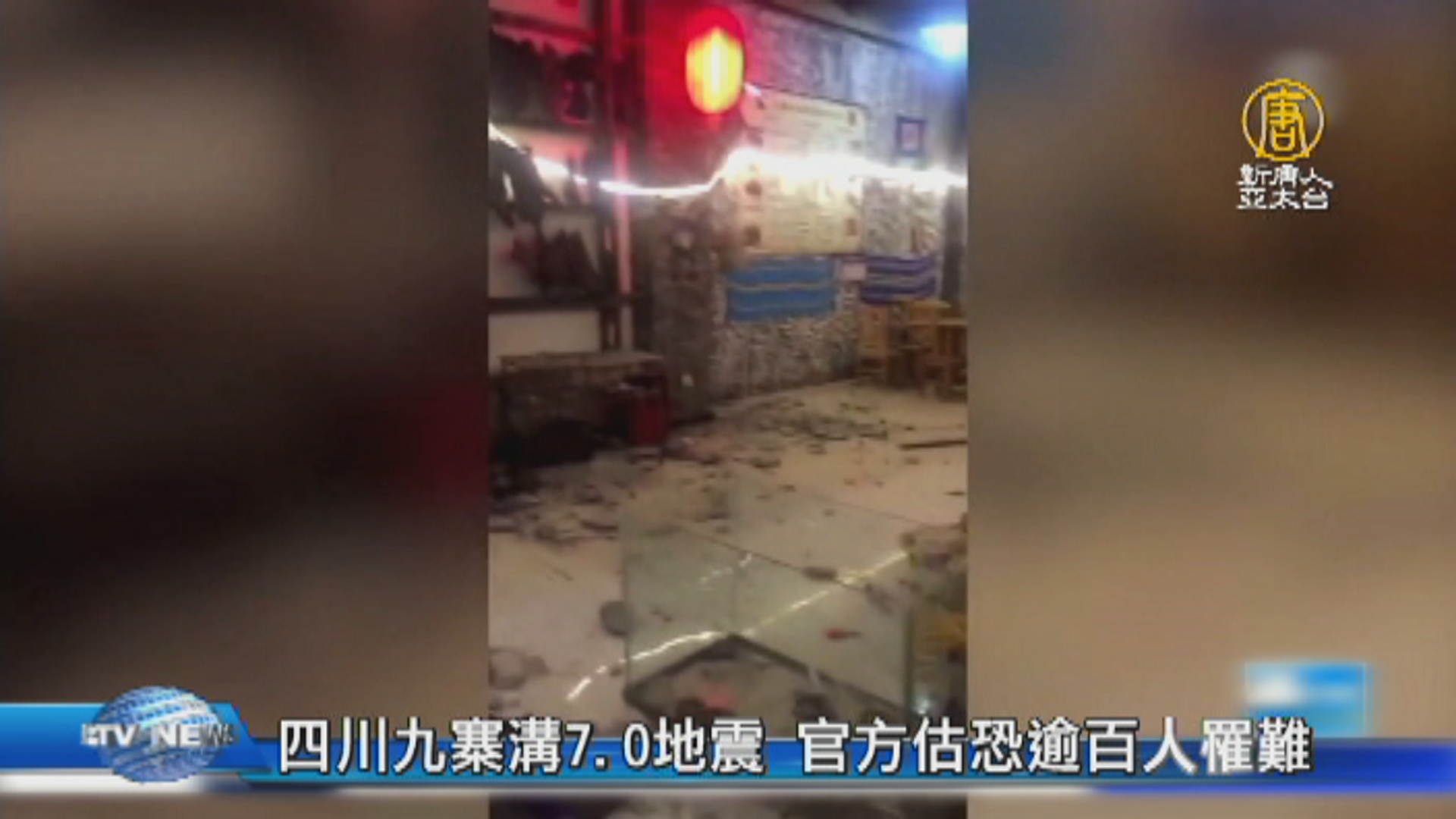 【新唐人亞太台 2017 年 08 月 09 日訊】再來看到,8日晚間9點多,中國四川九寨溝,發生芮氏規模7.0地震,目前已知至少有13人罹難,而國家減災中心估計,可能有超過一百人死亡、上千人受傷。