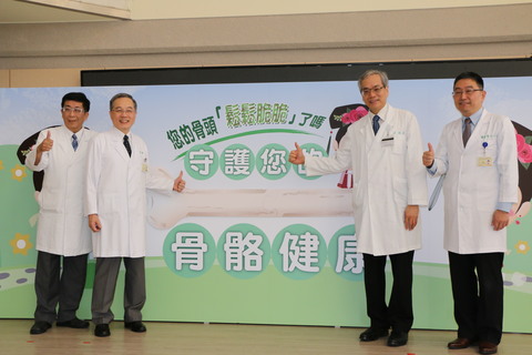臺北榮總與財團法人風濕病基金會台灣抗風濕病聯盟,於臺北榮總中正一樓大廳,舉行「骨質疏鬆衛教週」活動(榮總提供)