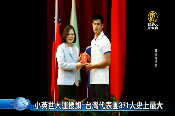 【新唐人亞太台 2017 年 08 月 10 日訊】台北世大運將在19日開幕,倒數8天,總統蔡英文今天上午,前往左營國家訓練中心,為世大運代表團授旗。本屆世大運,台灣組成史上最大的代表團,預計參加22種運動,共371名選手,蔡總統期勉選手全力以赴,把榮耀留在台灣!而在場外,50多名反年金改革的民眾,高喊蔡英文下台,一度想突破管制區,在警方增加支援警力後,場面才沒有失控。