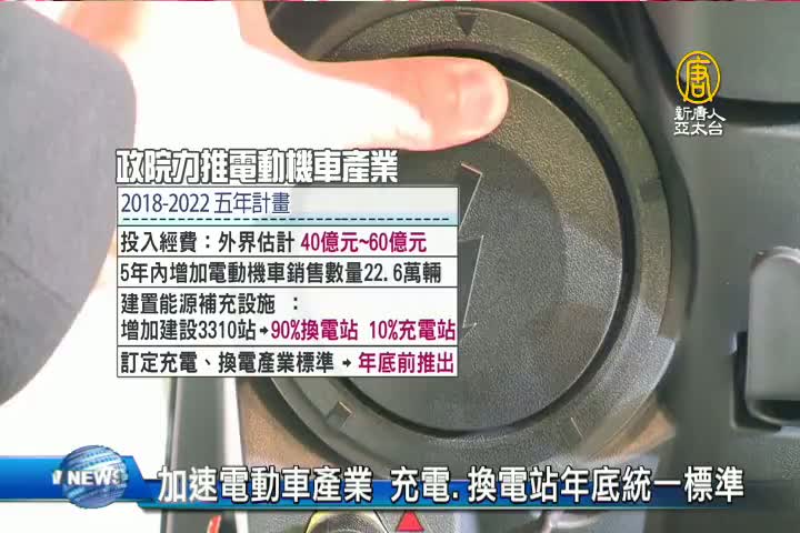 【新唐人亞太台 2017 年 08 月 15 日訊】電動機車產業,逐漸成為一項趨勢,政府規劃相關產業配套,力拼5年內電動機車數量,大幅成長23萬輛,年底前還要推出統一的換電、充電規格標準,希望帶動整體產業鏈,向海外輸出。