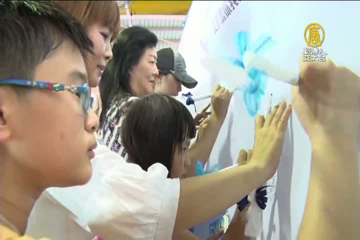 【新唐人亞太台 2017 年 08 月 15 日訊】大高雄「反毒反詐騙宣導」活動,13日在高雄花卉市場舉行,現場還有高雄熊,驚喜現身,引來小朋友一陣騷動,主辦單位希望,號召百萬人次在反毒宣誓牆簽名響應。