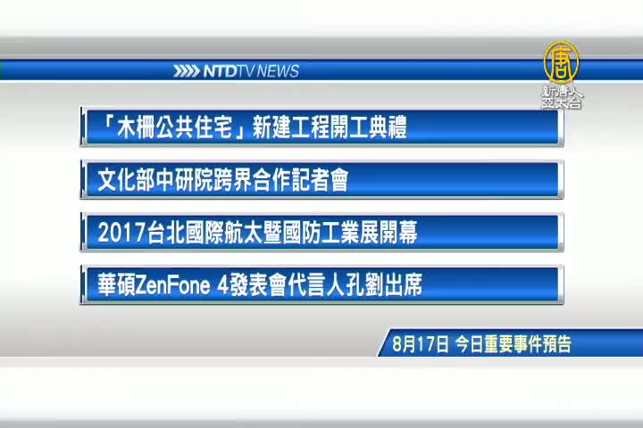 【新唐人亞太台 2017 年 08 月 17 日訊】接著看到,今天,8月17日,星期四,有哪些重要活動。首先是,