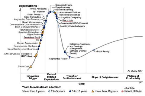 【新唐人亞太台 2017 年 08 月 18 日訊】國際研究暨顧問機構Gartner公布2017年新興技術發展週期報告(Hype Cycle for Emerging Technologies, 2017),由眾多新興技術中點名三大趨勢:無所不在的人工智慧 (Artificial intelligence)、透明沉浸式體驗(transparently immersive experiences)與數位平台(digital platforms),將在未來五到十年協助企業在數位經濟時代下成長茁壯。Gartner認為這些趨勢將以無與倫比的智慧功能,打造深層的全新體驗,並提供能使企業組織與新型商業型態連結的平台。